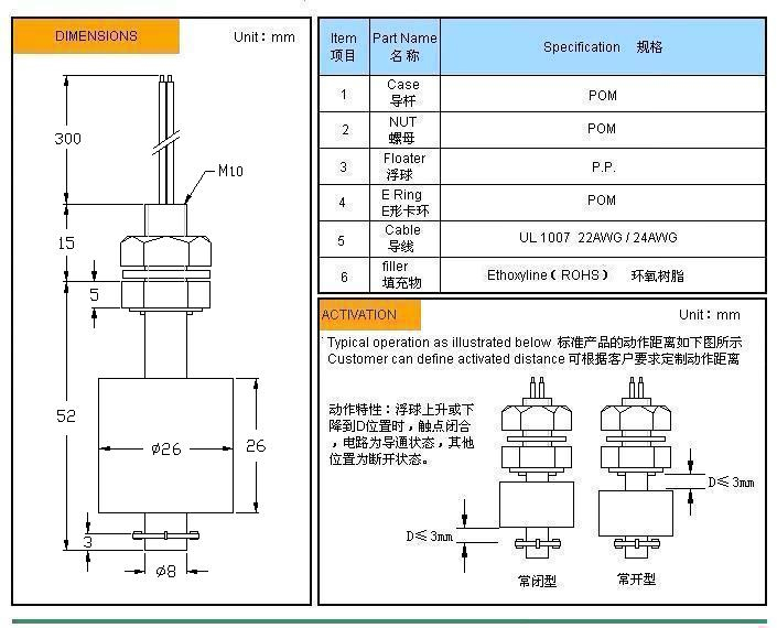 - 產品名稱: 塑料浮球液位開關 MR1052-P