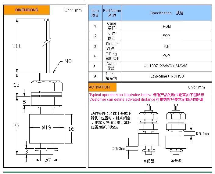- 產品名稱: 塑料浮球液位開關 MR0835-P