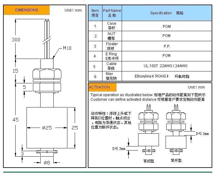 - 產品名稱: 塑料浮球液位開關 MR1045-P