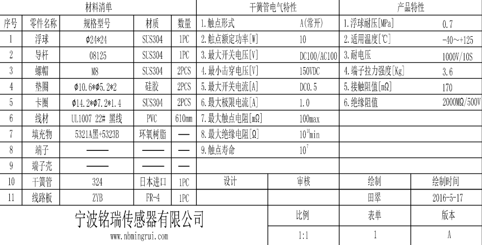- 產品名稱: 不銹鋼浮球液位開關MR08125-SS