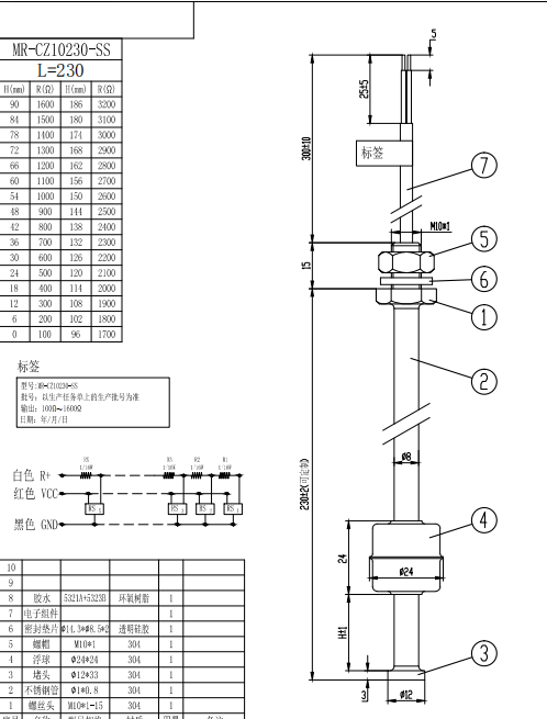 - 產品名稱: 磁阻式液位傳感器MR-CZ10230-SS