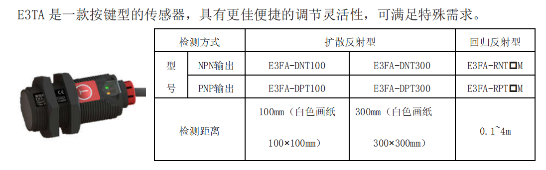 • 產(chǎn)品名稱: 新一代圓柱形光電傳感器MRE3FA更佳檢測(cè)性能