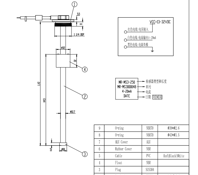 - 產品名稱: 油水箱液位傳感器MR-MS3